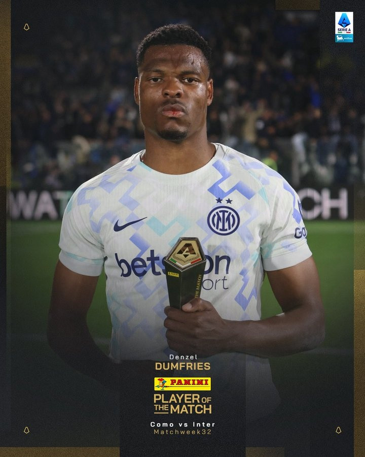 直播吧4月13日讯在国米4-3逆转科莫后,邓弗里斯当选全场最好球员。