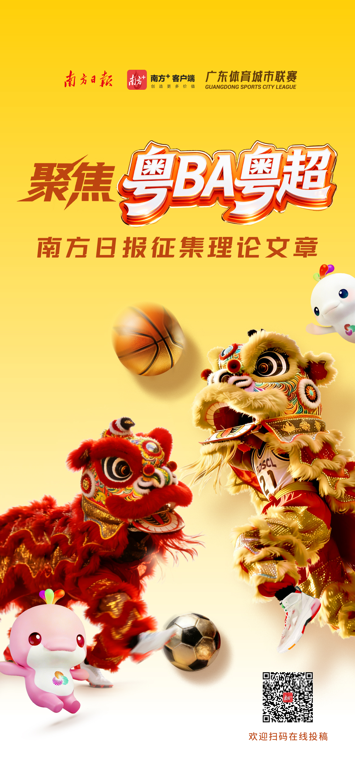 为真切通晓粤BA、粤超的赛事肌理以及背后的城市精神、文化赋能、体育经济、社会传播、细腻塑造等命题,南边日报、南边+客户端现面向全社会公开搜集表面著述,期待深化征询、加强阐释、积极建言。