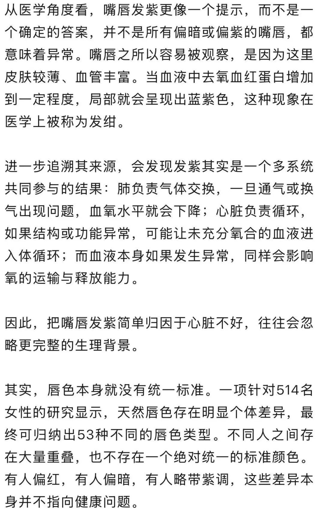 比神色浅深更垂危的是热心短技巧内唇色是否发生显然变化。这种从“静态神色”转向“动态变化”的不雅察神气,频频更接近医学判断的逻辑。