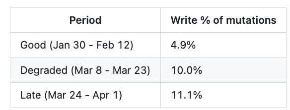 拜访阐彰着示,质料退化问题于 3 月 8 日被独处上报,而这一天,偶合是脱敏念念考块占比碎裂 50% 的日子。据悉,脱敏功能是分阶段部署的,从 1.5% 徐徐进步至 25%、58.4%,最终在一周内达到 100%。