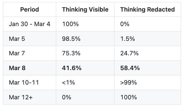 通过对会话文献的量化分析,Stella Laurenzo 指出:念念考内容脱敏功能(redact-thinking-2026-02-12)的上线,与复杂长会话工程责任流的质料退化,有着精确的对应关联。