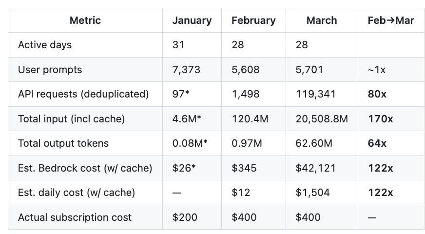 从 2 月到 3 月,Claude Code API 苦求量径直暴涨了 80 倍,输出的 token 也加多了 64 倍。据估算,每月的使用资本从几百好意思元,径直飙升到 4 万多好意思元。本来想省单次念念考的算力,恶果因为 Claude Code 反复改错、需要按捺重试,反而让全体资本径直失控,简直是失掉赚吆喝。