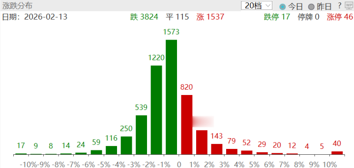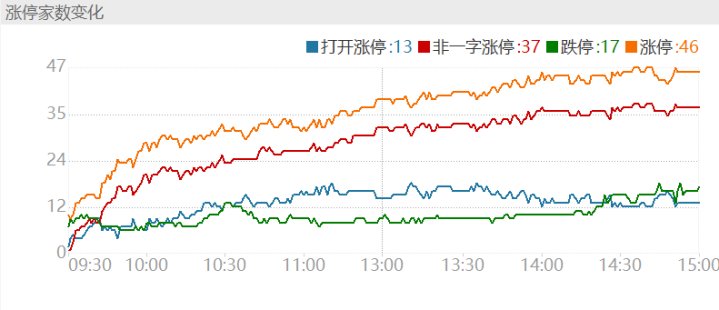 上一往未来涨停个股总共46只,跌停个股17只。