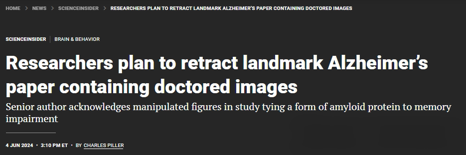 着手:《Science》 Researchers plan to retract landmark Alzheimer’s paper containing doctored images开云体育app