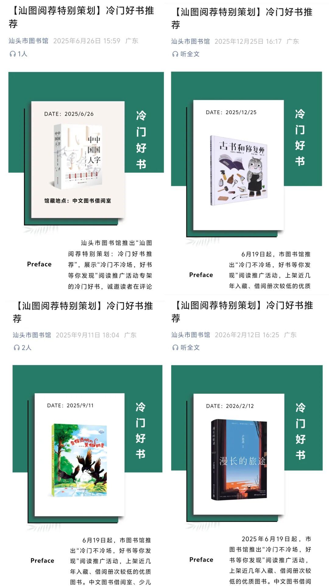 “冷门好书保举”专题栏目在汕头市藏书楼微信、微博、网站推出
