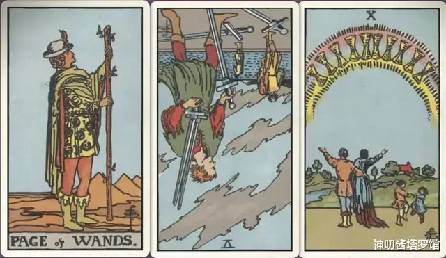 牌:权杖随从+ 宝剑五- 圣杯十+